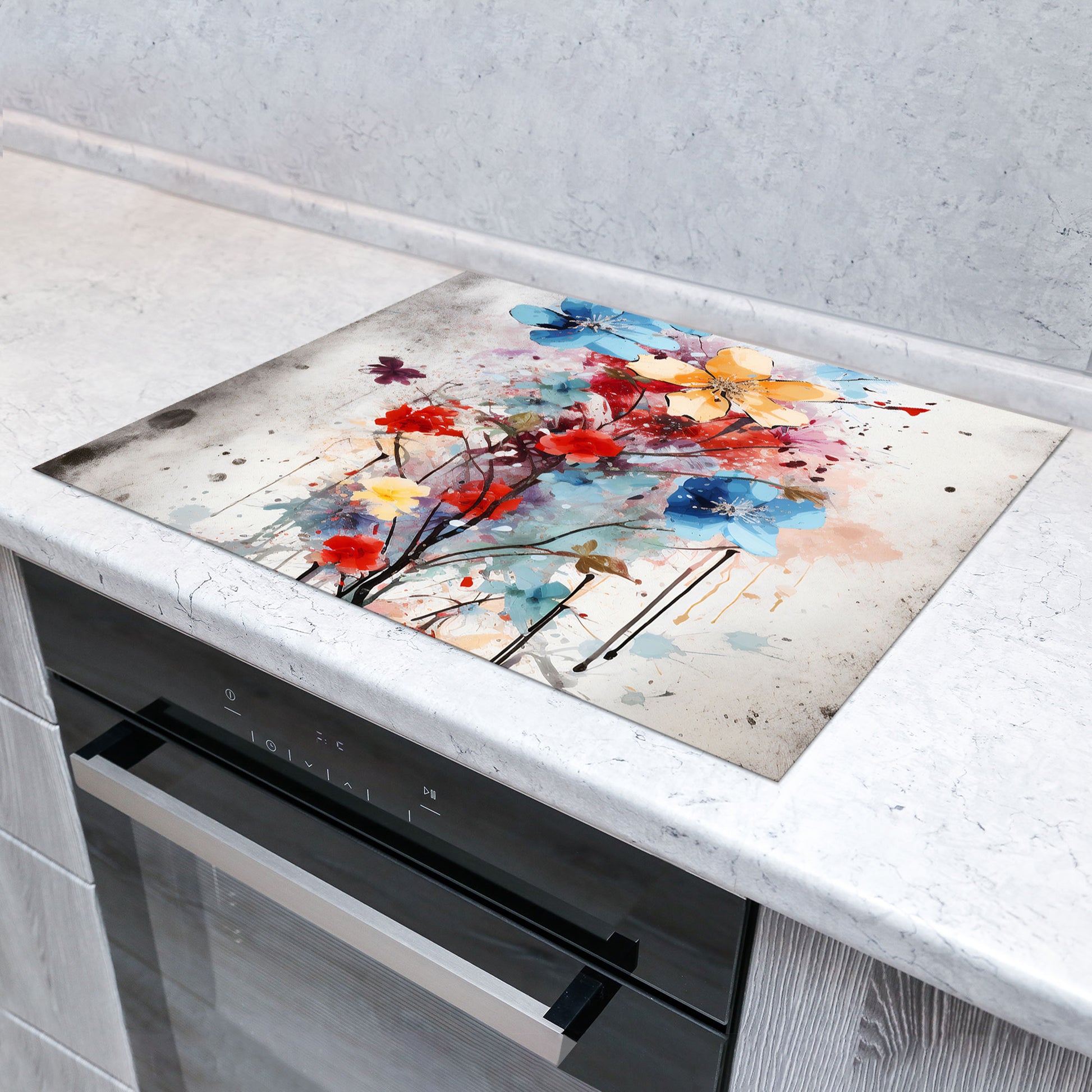 Abstrakt bunte Blumen Herdabdeckplatte Induktionsschutz für Ceranfeld & Küche Deko