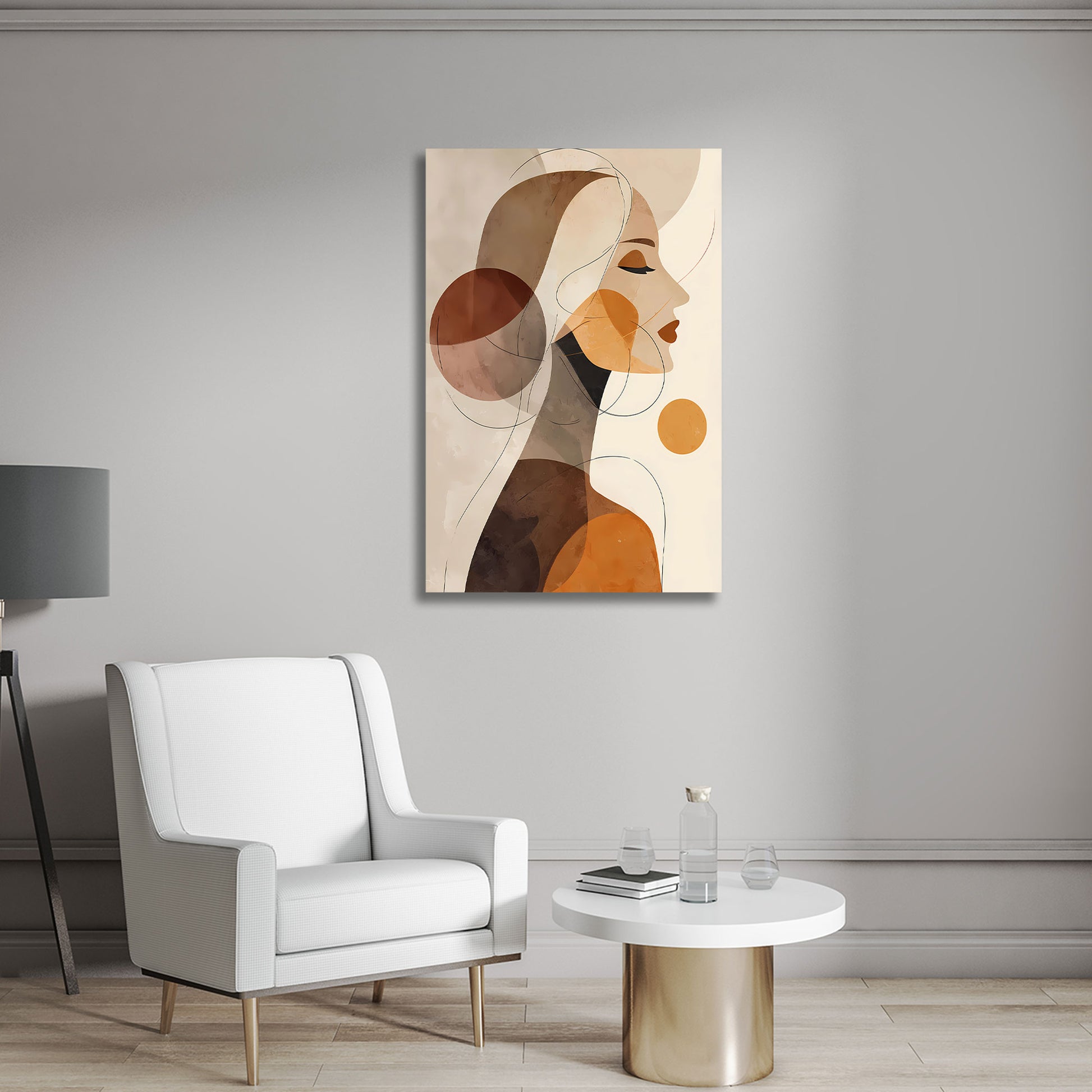 Abstrakt Frau Seitenansicht Orange Braun Linienkunst Wandbild