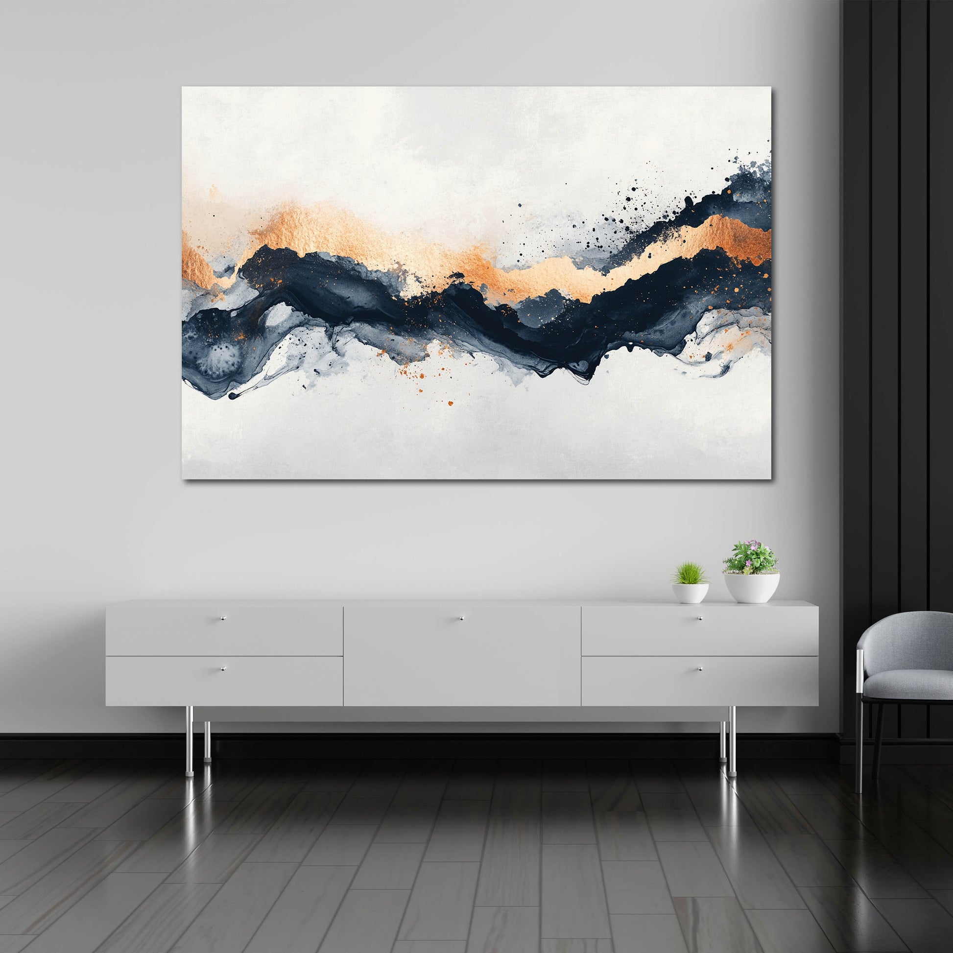 Abstrakt Goldakzent Dunkelblau auf Weiß Marmoroptik Wandbild