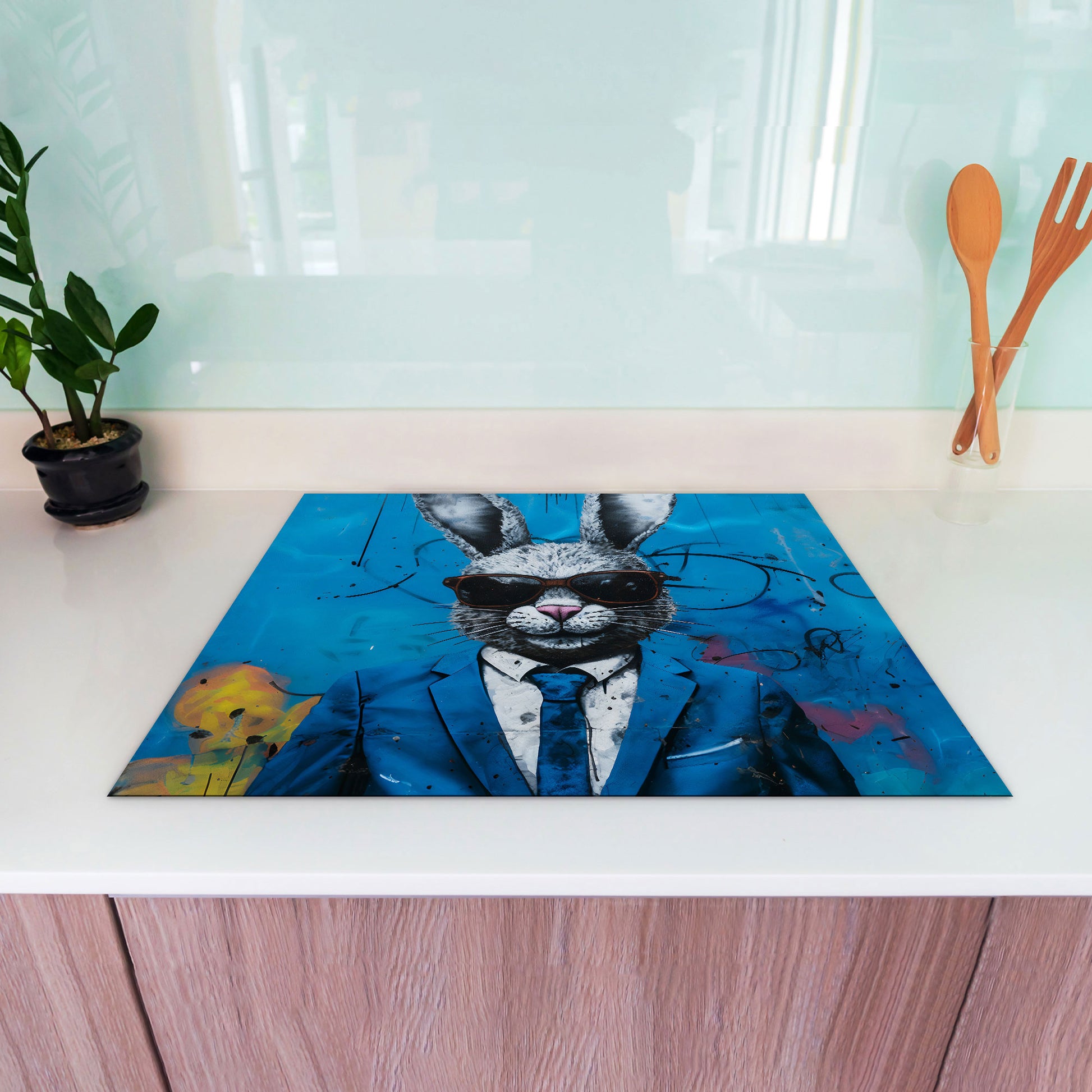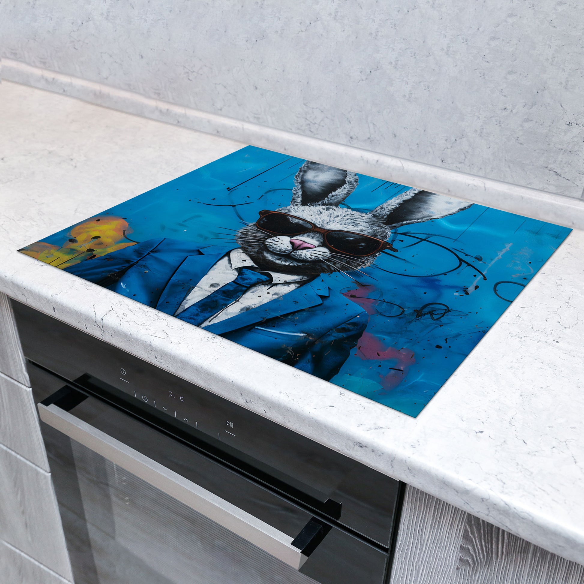 Abstrakt Hase im Anzug Herdabdeckplatte Induktionsschutz für Ceranfeld & Küche Deko