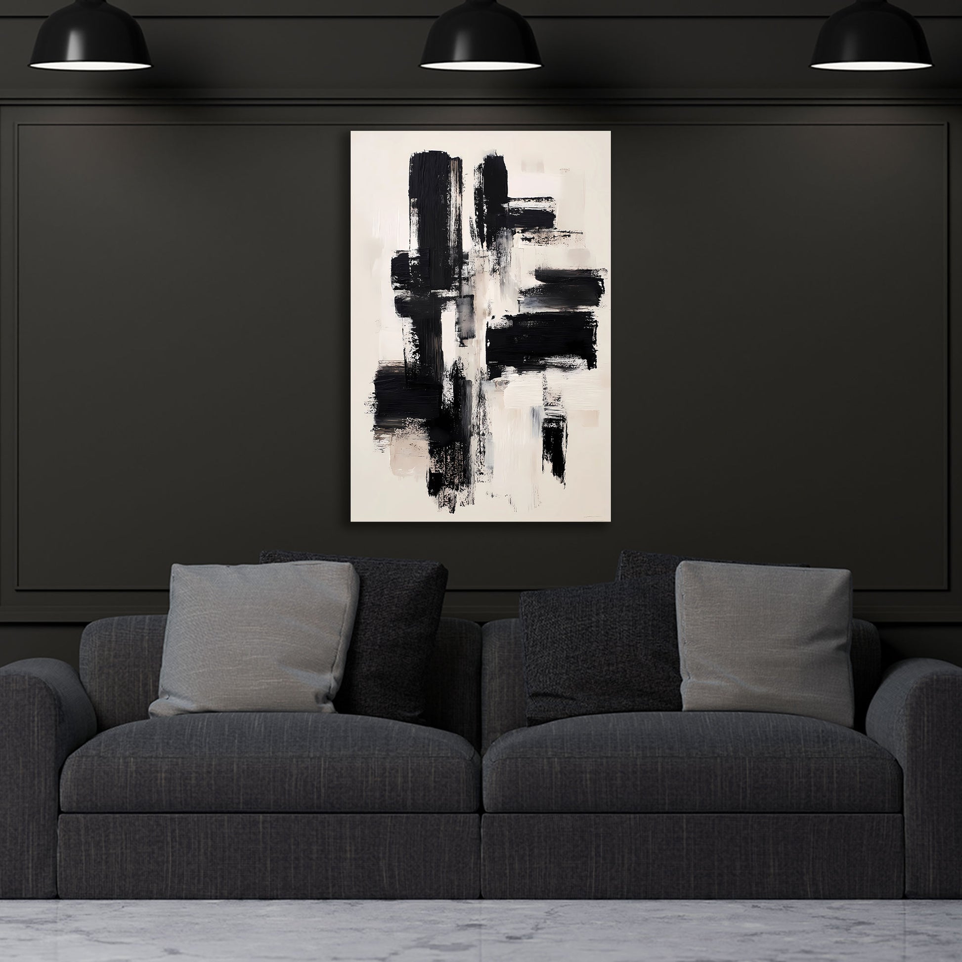 Abstrakt Pinselstriche Schwarz Weiß Beige Wandbild