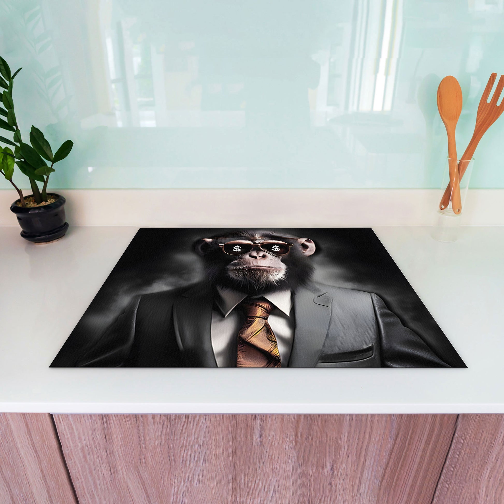 Affe im Anzug mit Sonnenbrille Herdabdeckplatte Induktionsschutz für Ceranfeld & Küche Deko