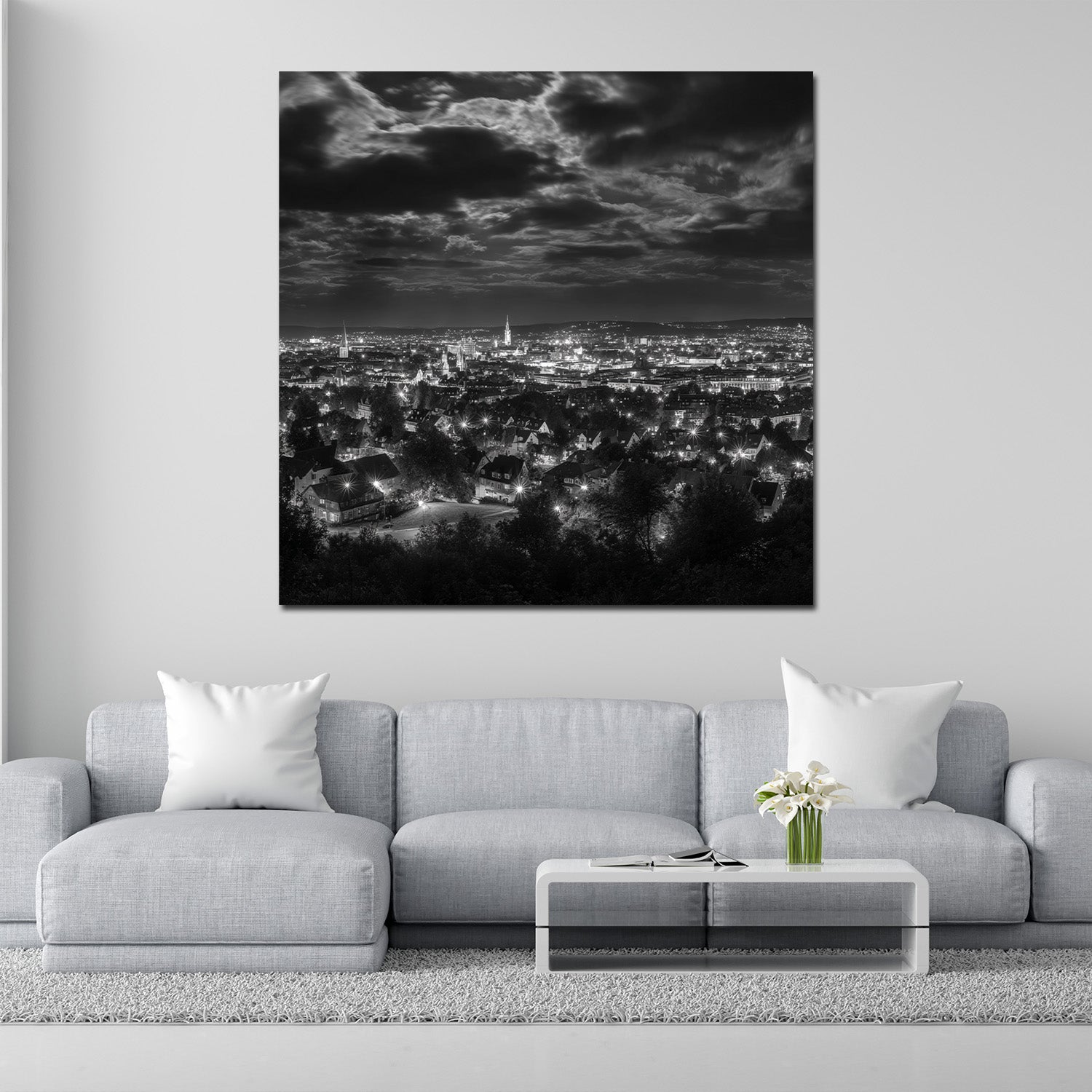 Aussichtspunkt Wiesbaden schwarz weiß Stadtpanorama nachts Wandbild