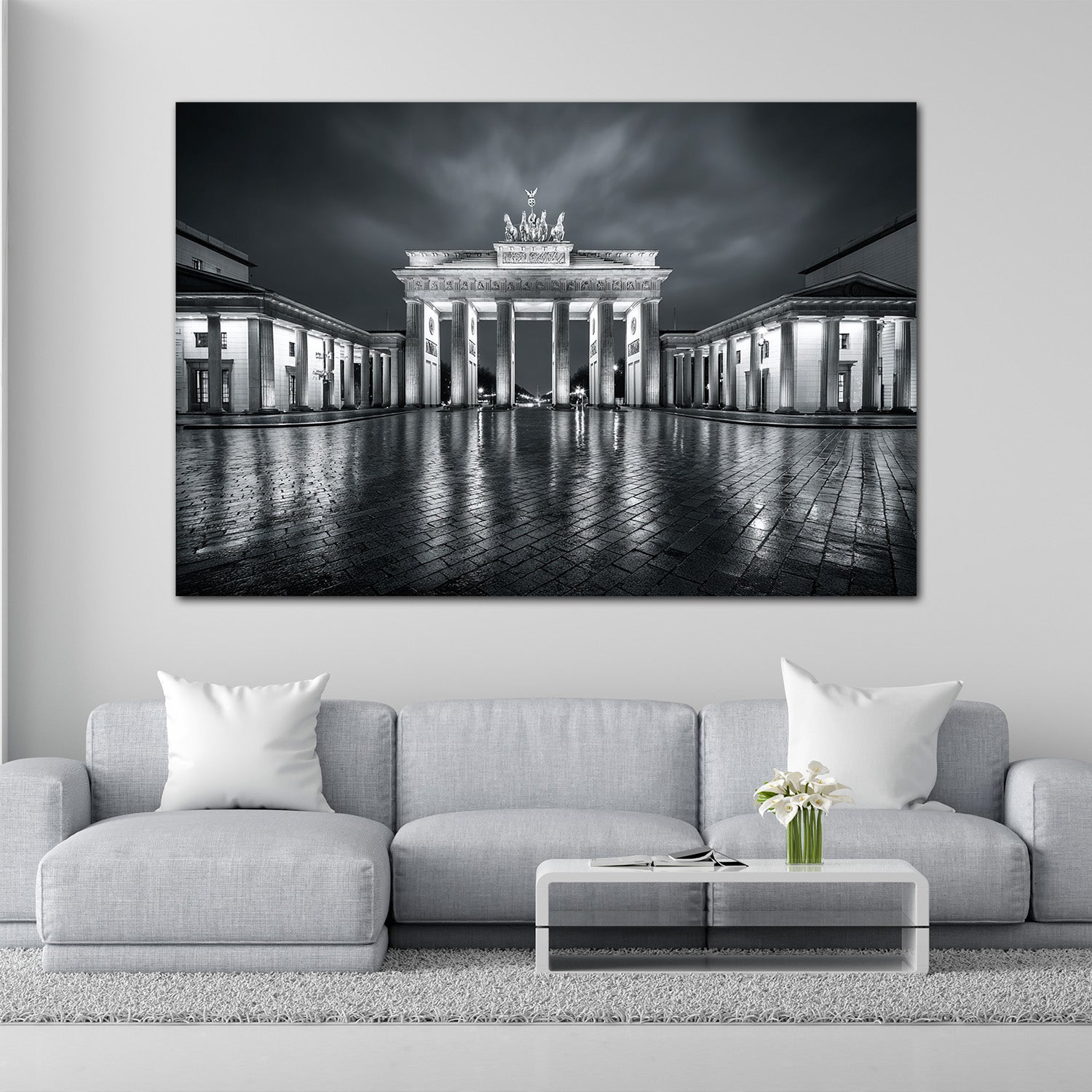 Brandenburger Tor Berlin schwarz weiß Regen Spiegelung Wandbild