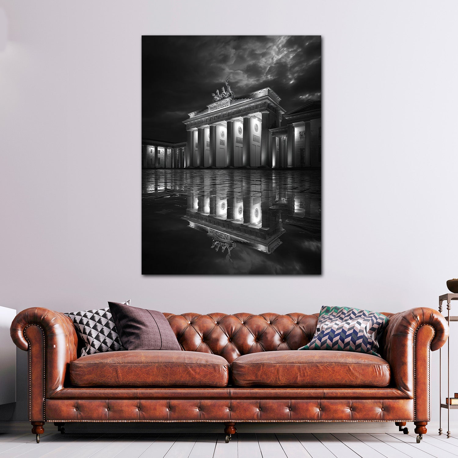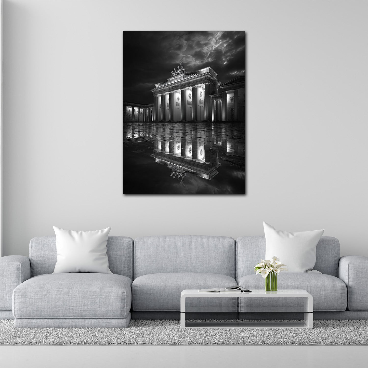 Brandenburger Tor Berlin schwarz weiß Spiegelung Wandbild