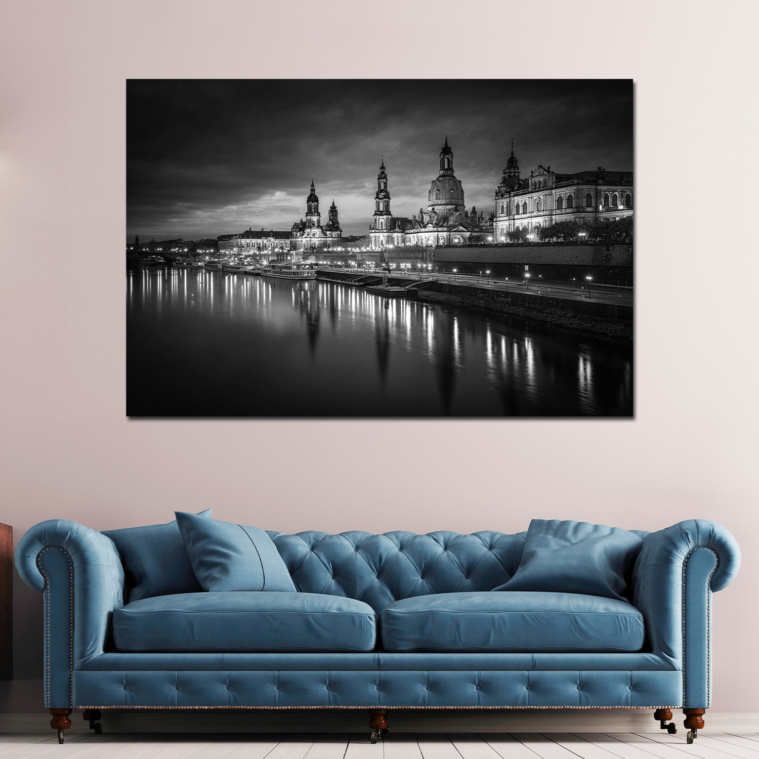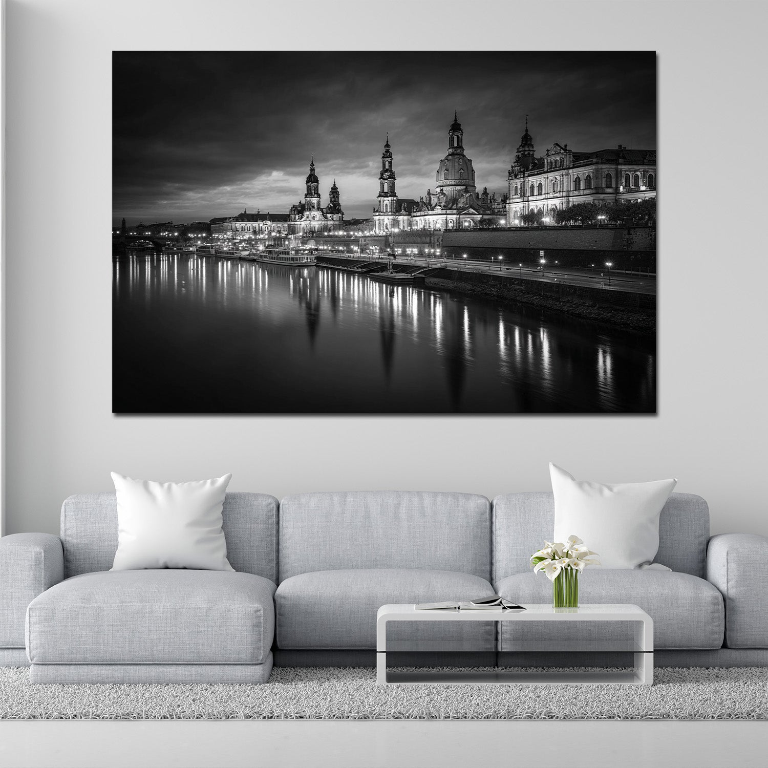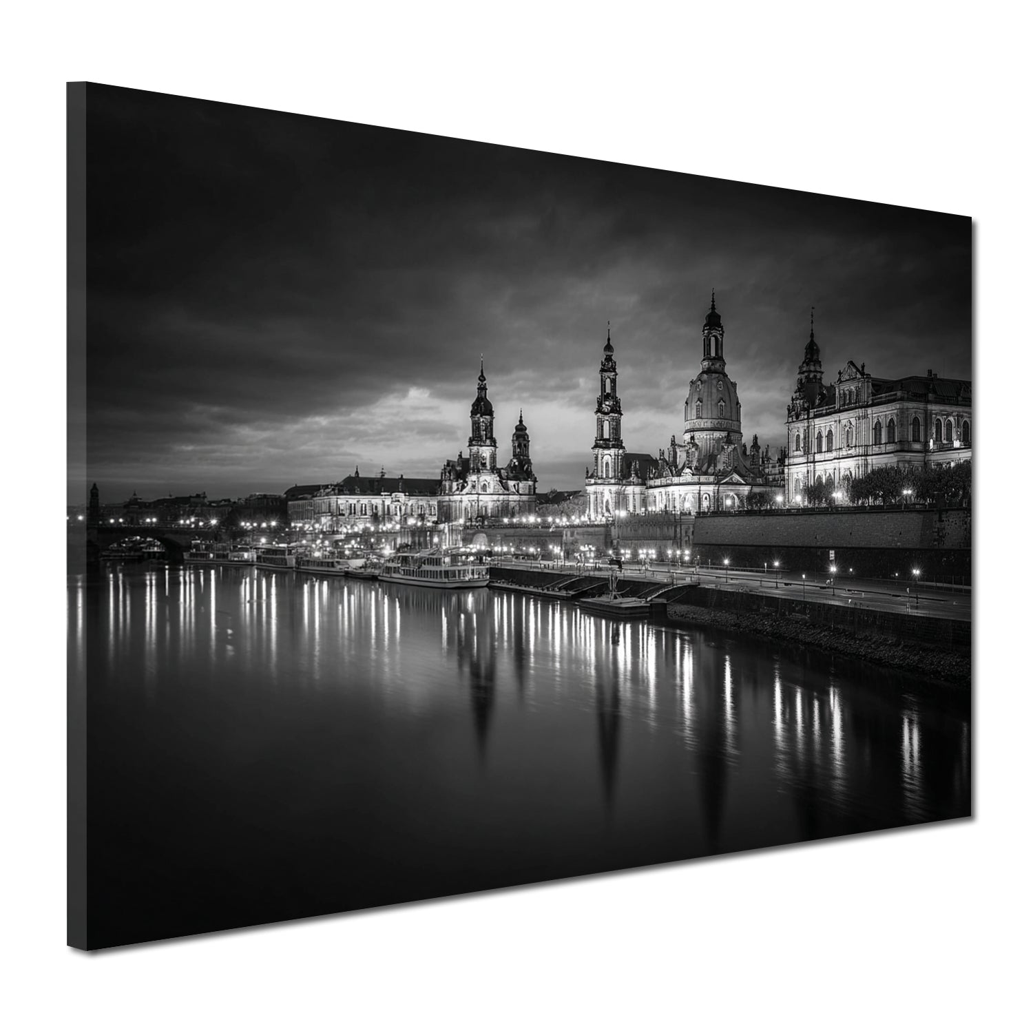 Dresdner Altstadt Elbufer Abendstimmung schwarz weiß Wandbild