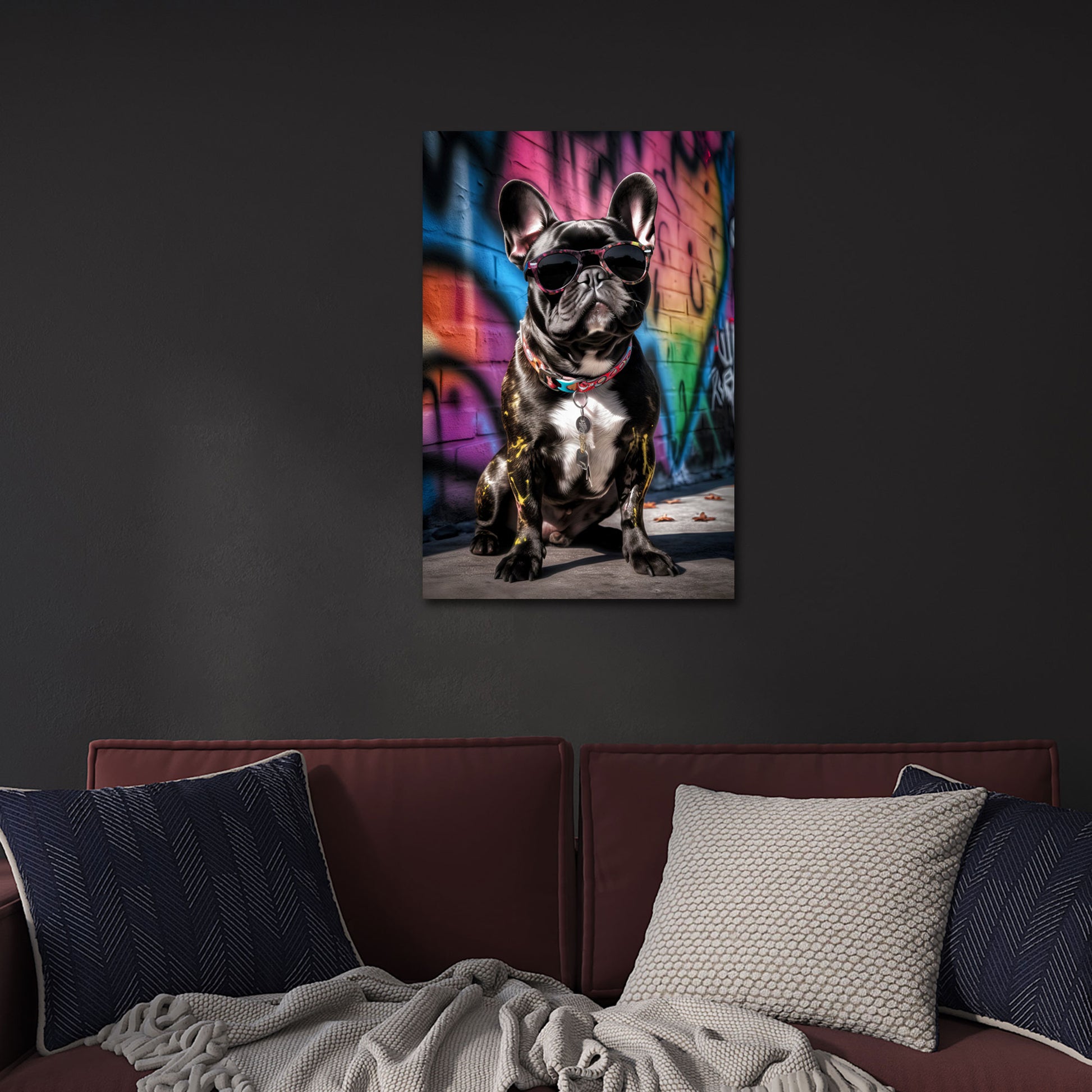 Französische Bulldogge mit Sonnenbrille Graffiti Wandbild