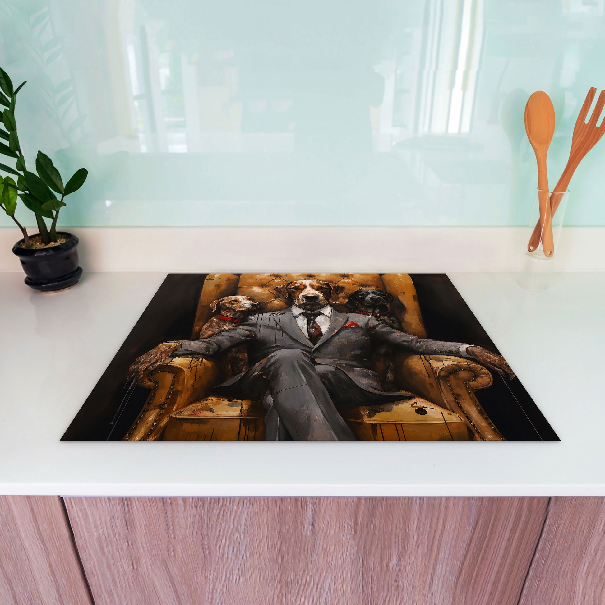 Hund im Anzug Herdabdeckplatte Induktionsschutz für Ceranfeld & Küche Deko