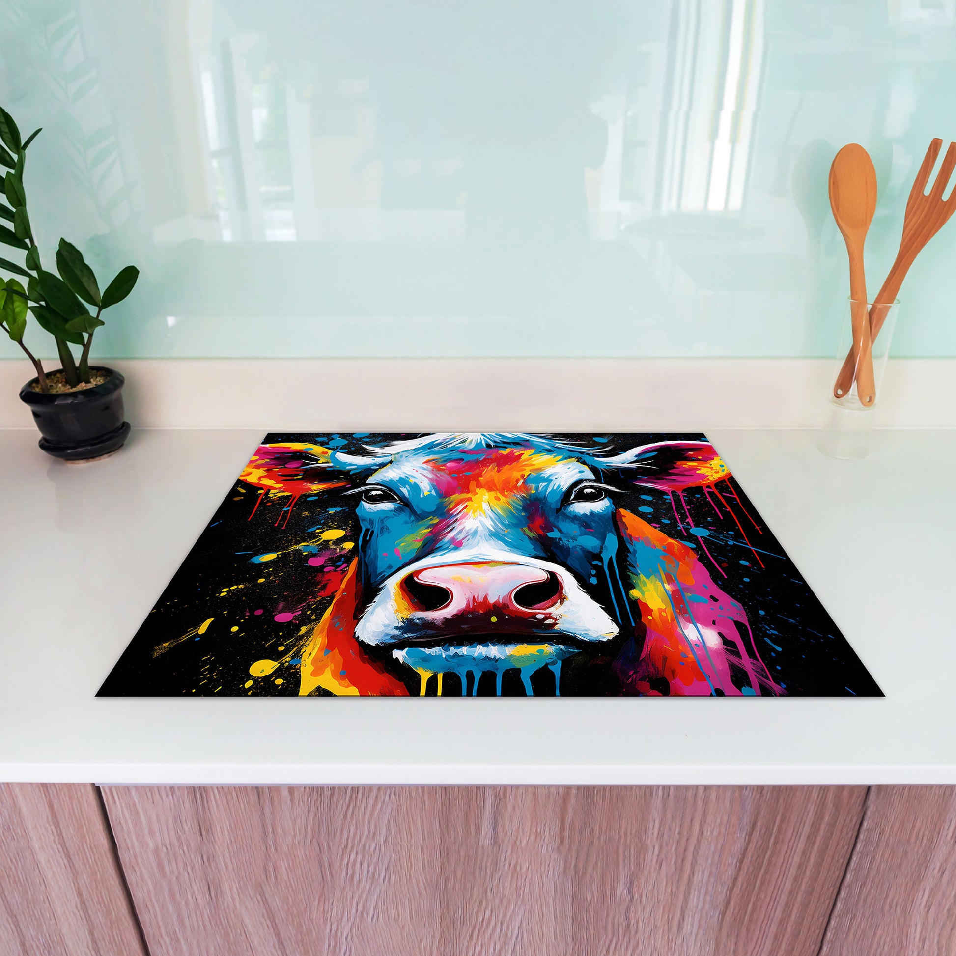 Kuh Pop Art abstrakt Herdabdeckplatte Induktionsschutz für Ceranfeld & Küche Deko