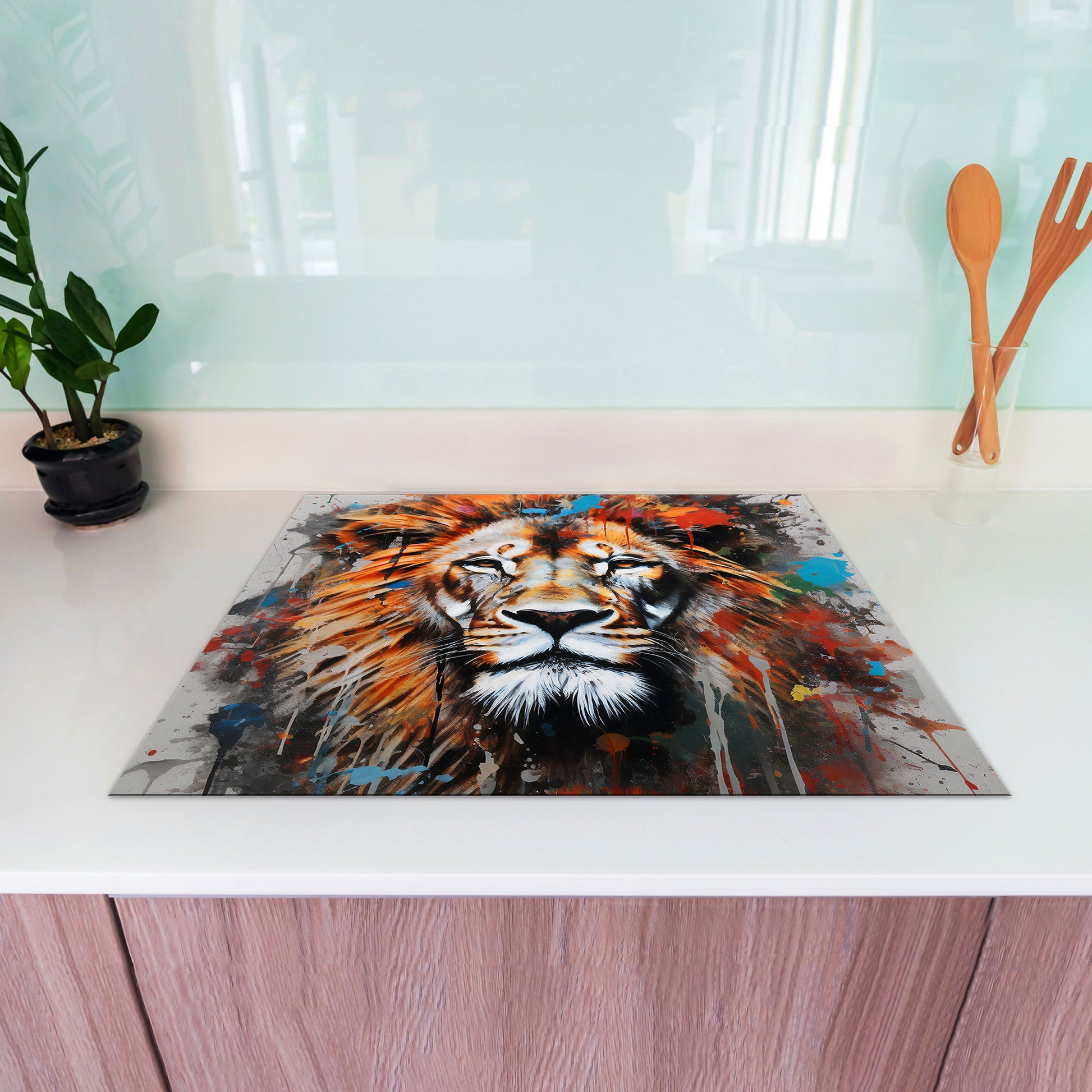 Löwe Kopf Pop Art Herdabdeckplatte Induktionsschutz für Ceranfeld & Küche Deko