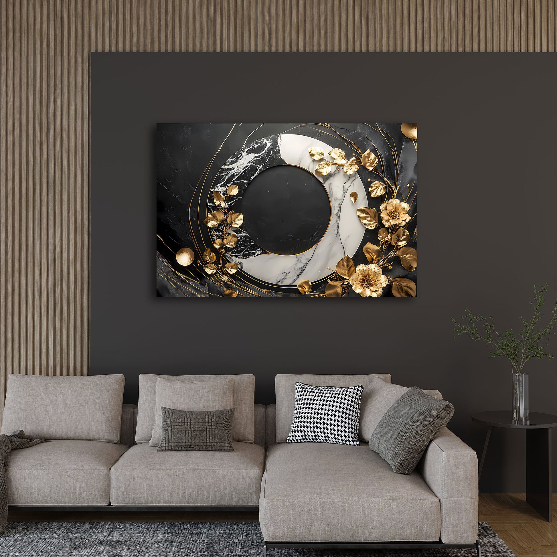 Marmoroptik mit goldenen Blüten und Struktur Wandbild