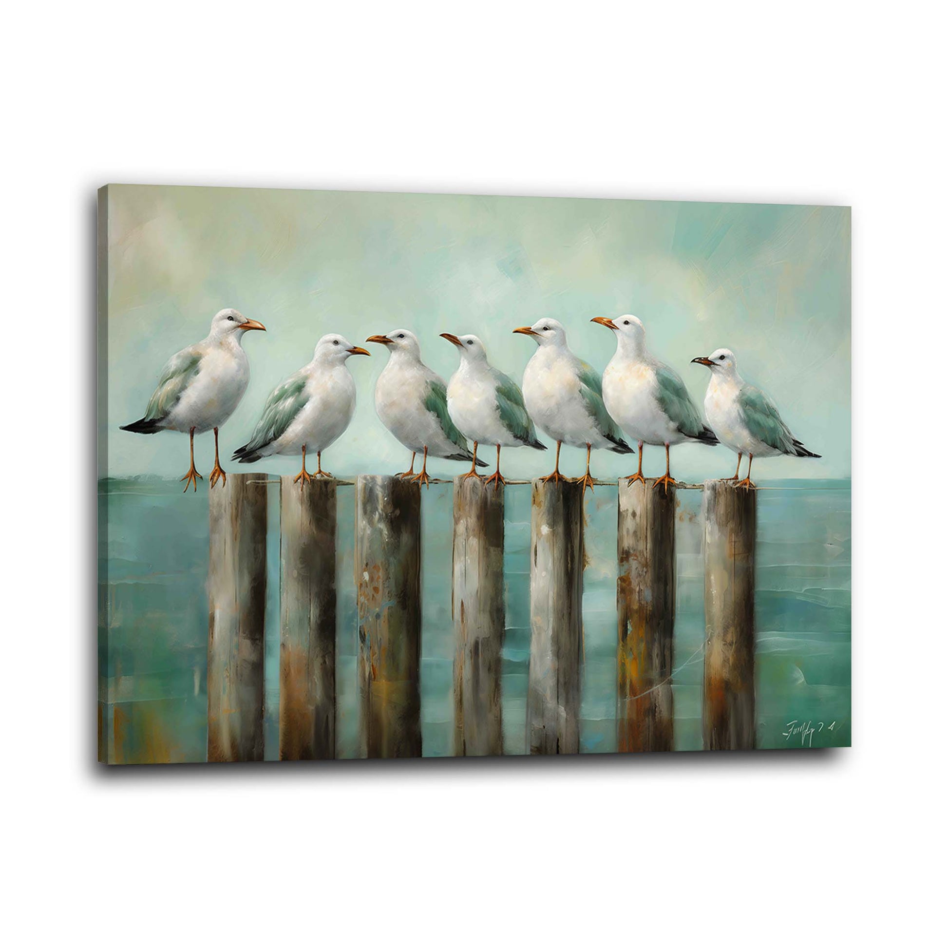 Möwen Meer Pfähle Aquarell maritim Wandbild