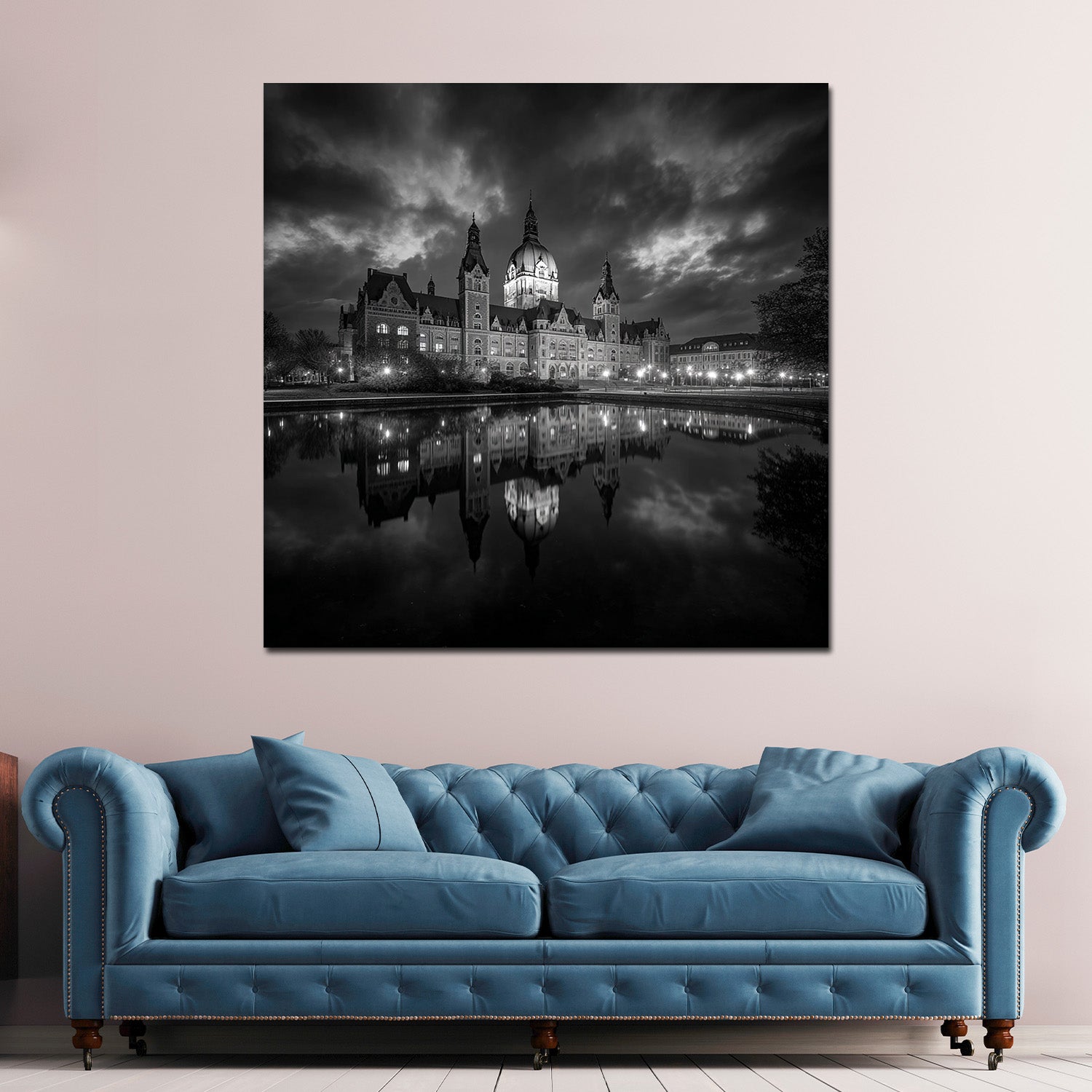 Neues Rathaus Hannover schwarz weiß Spiegelung Himmel Wandbild