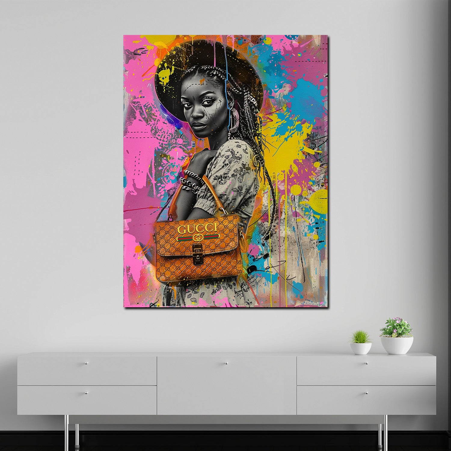 Pop Art afrikanische Schönheit mit Luxustasche Wandbild