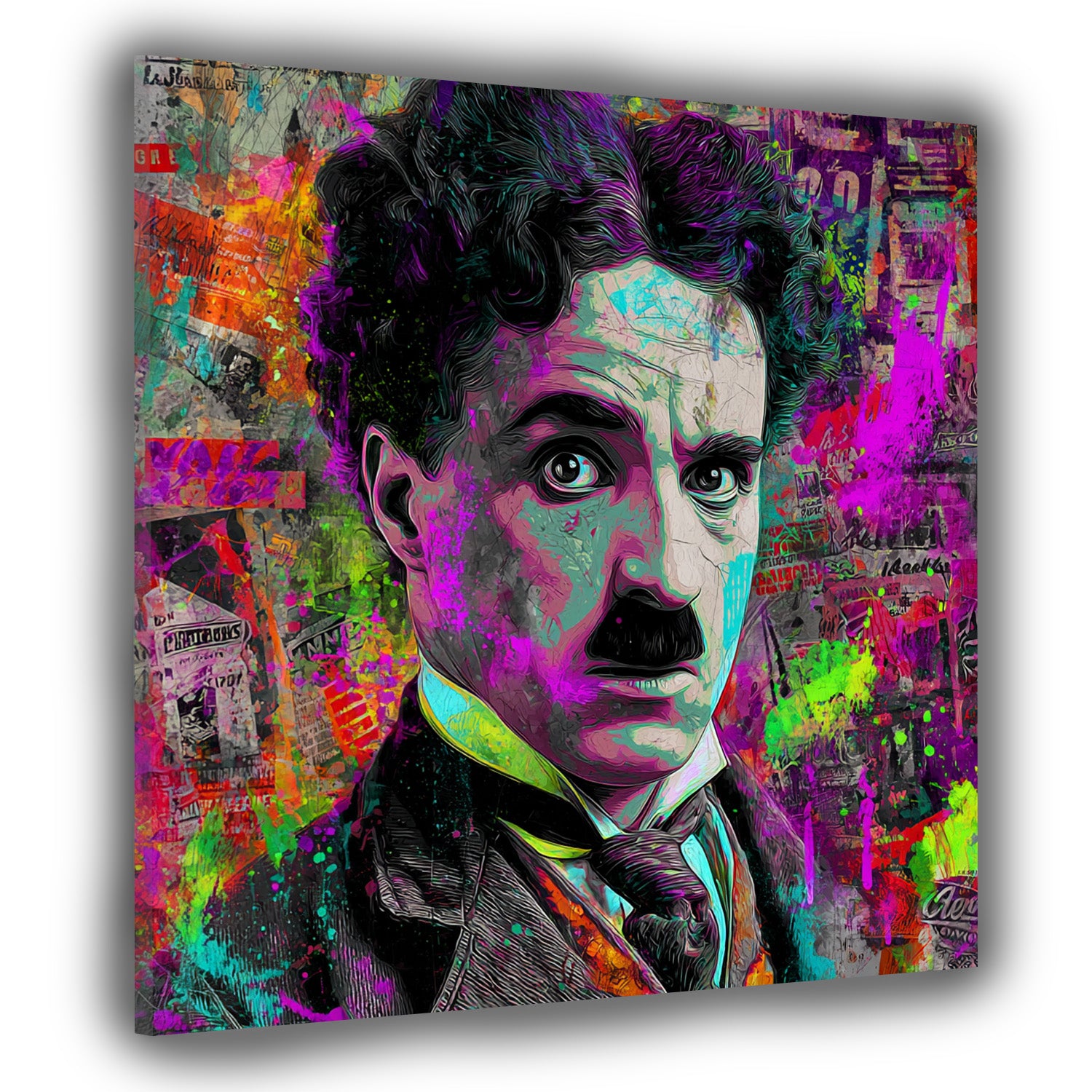 Pop Art Chaplin Porträt mit Neon Hintergrund Wandbild