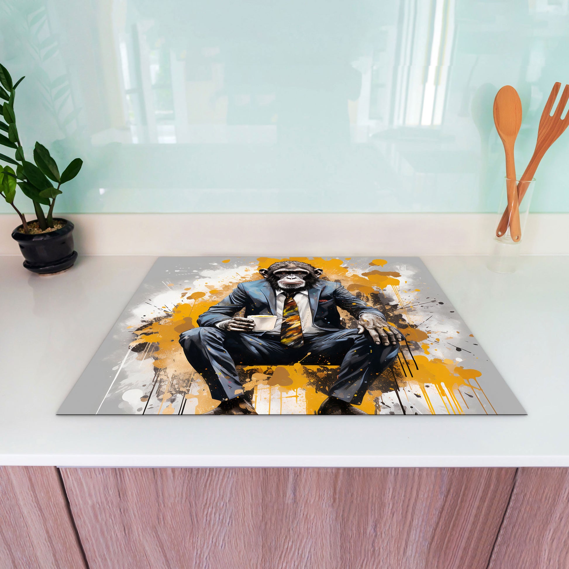 Pop Art Gorilla im Anzug Herdabdeckplatte Induktionsschutz für Ceranfeld & Küche Deko