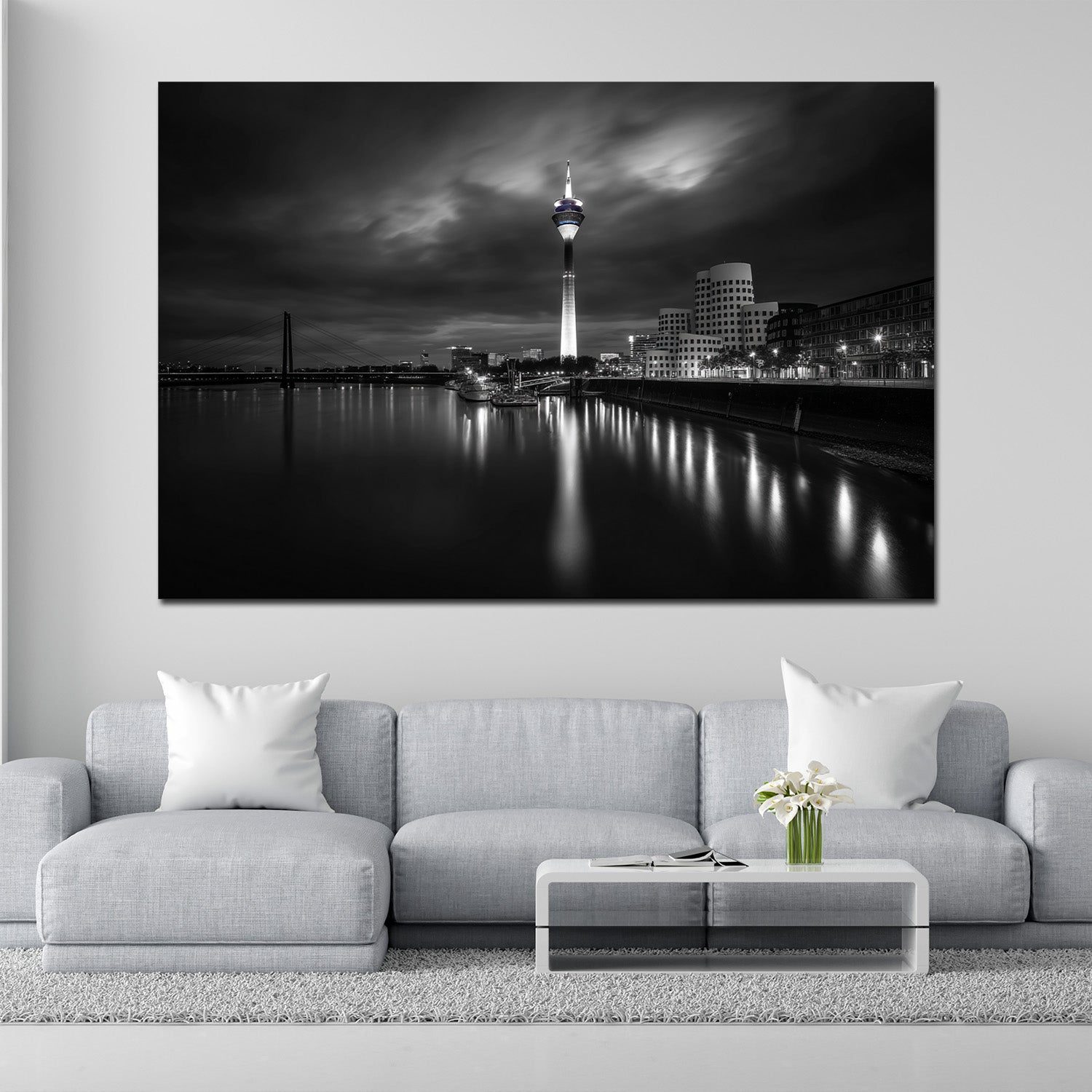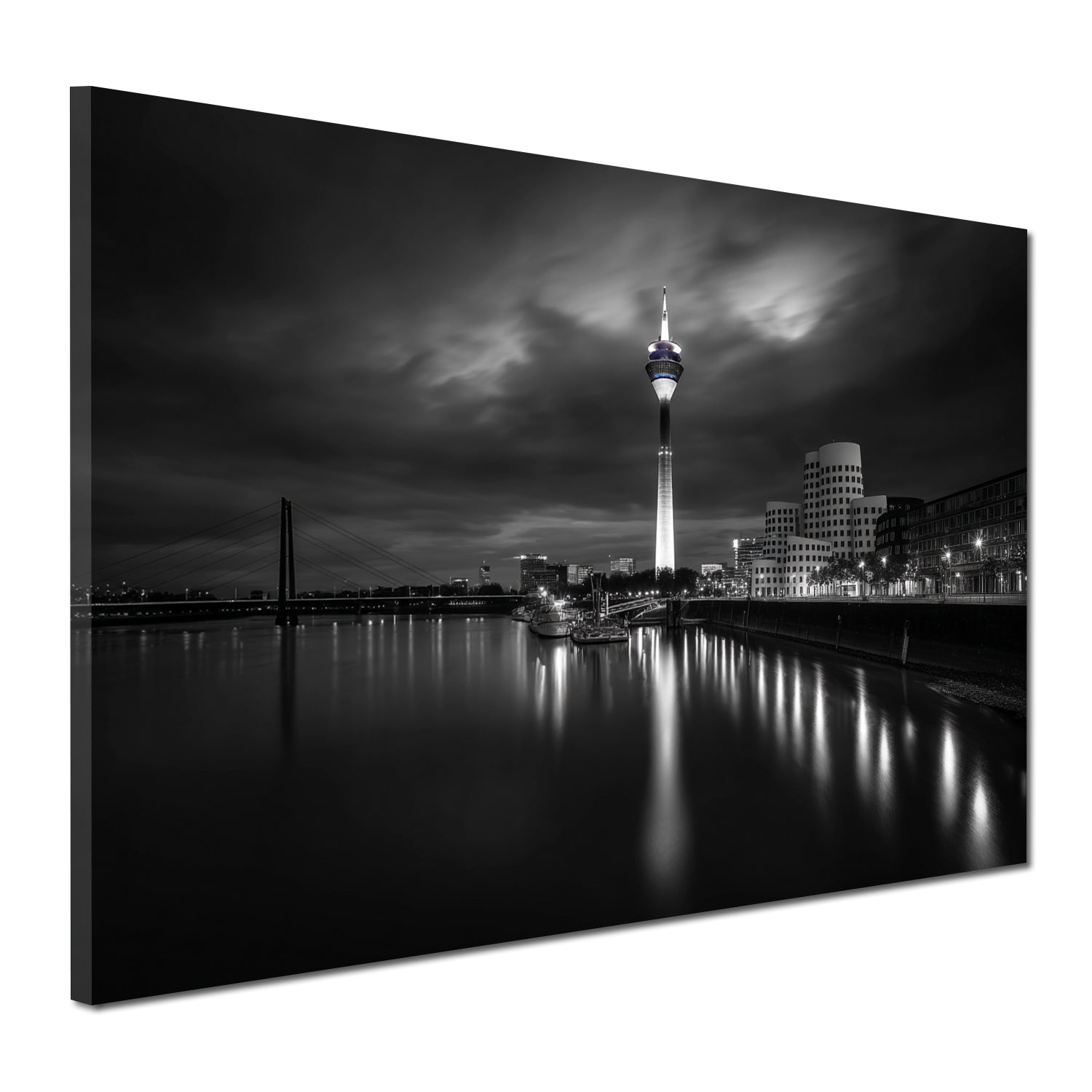 Rheinturm Düsseldorf schwarz weiß Wahrzeichen bei Nacht Wandbild
