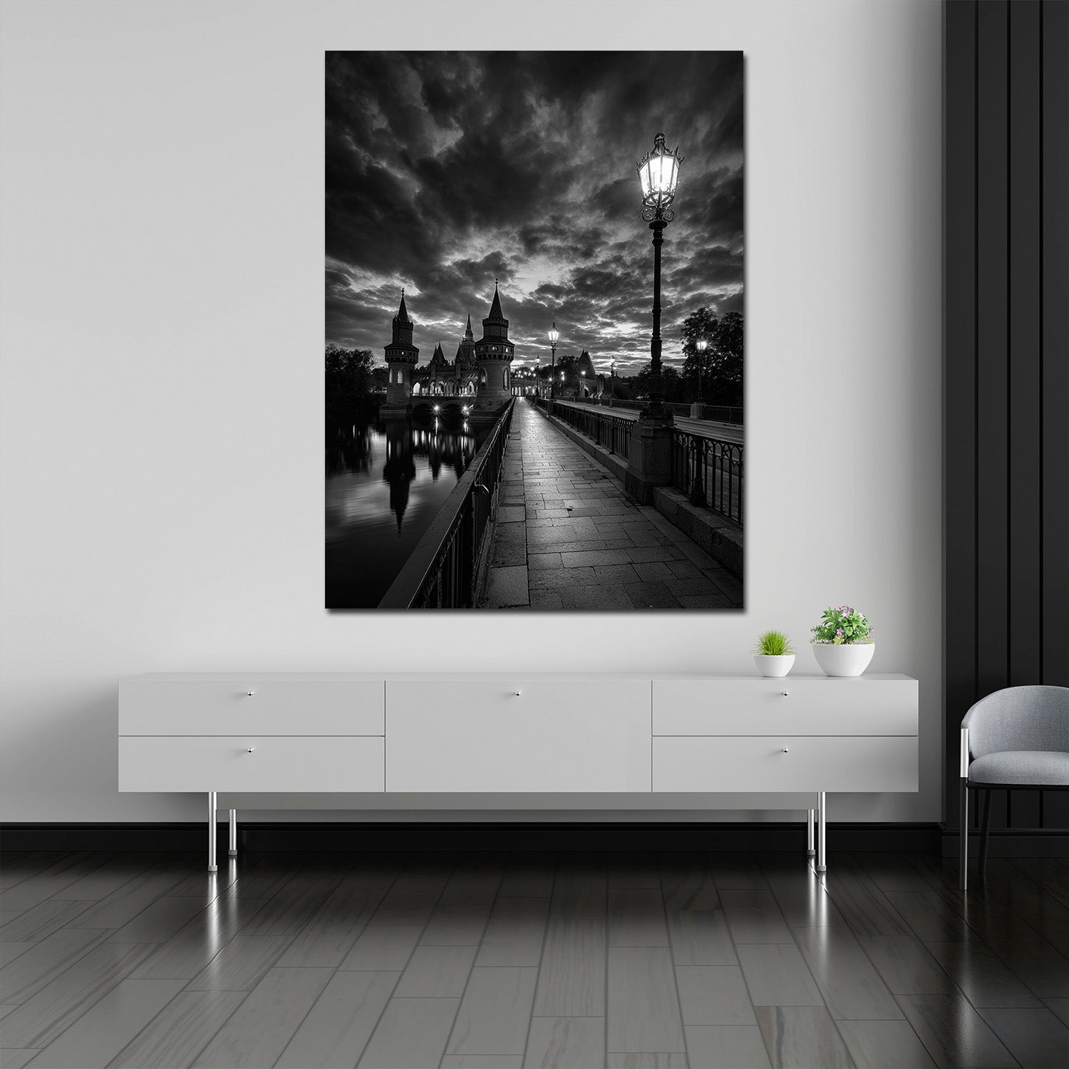 Schlossbrücke Schwerin schwarz weiß historische Architektur Wandbild