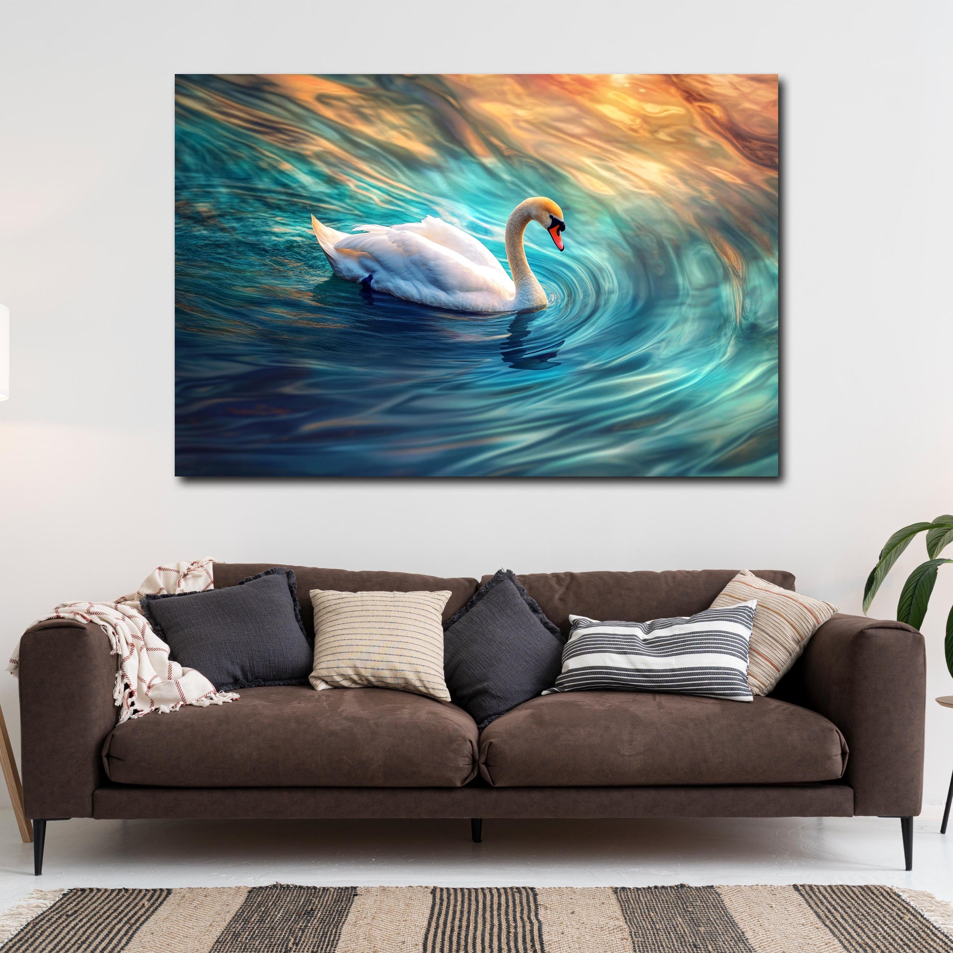 Schwan Wasserwirbel Sonnenuntergang Farben Wandbild