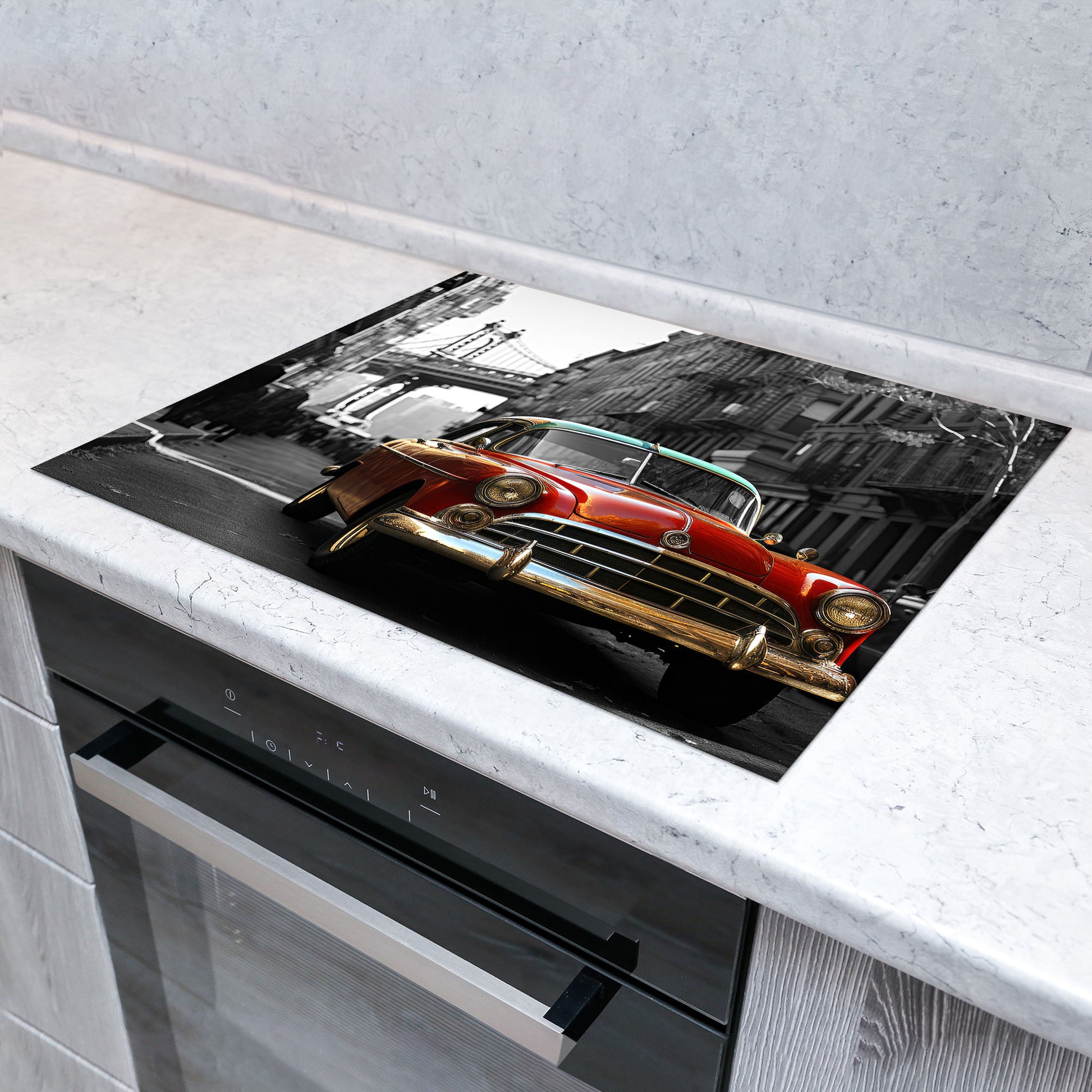 Schwarz weiß Oldtimer Herdabdeckplatte Induktionsschutz für Ceranfeld & Küche Deko