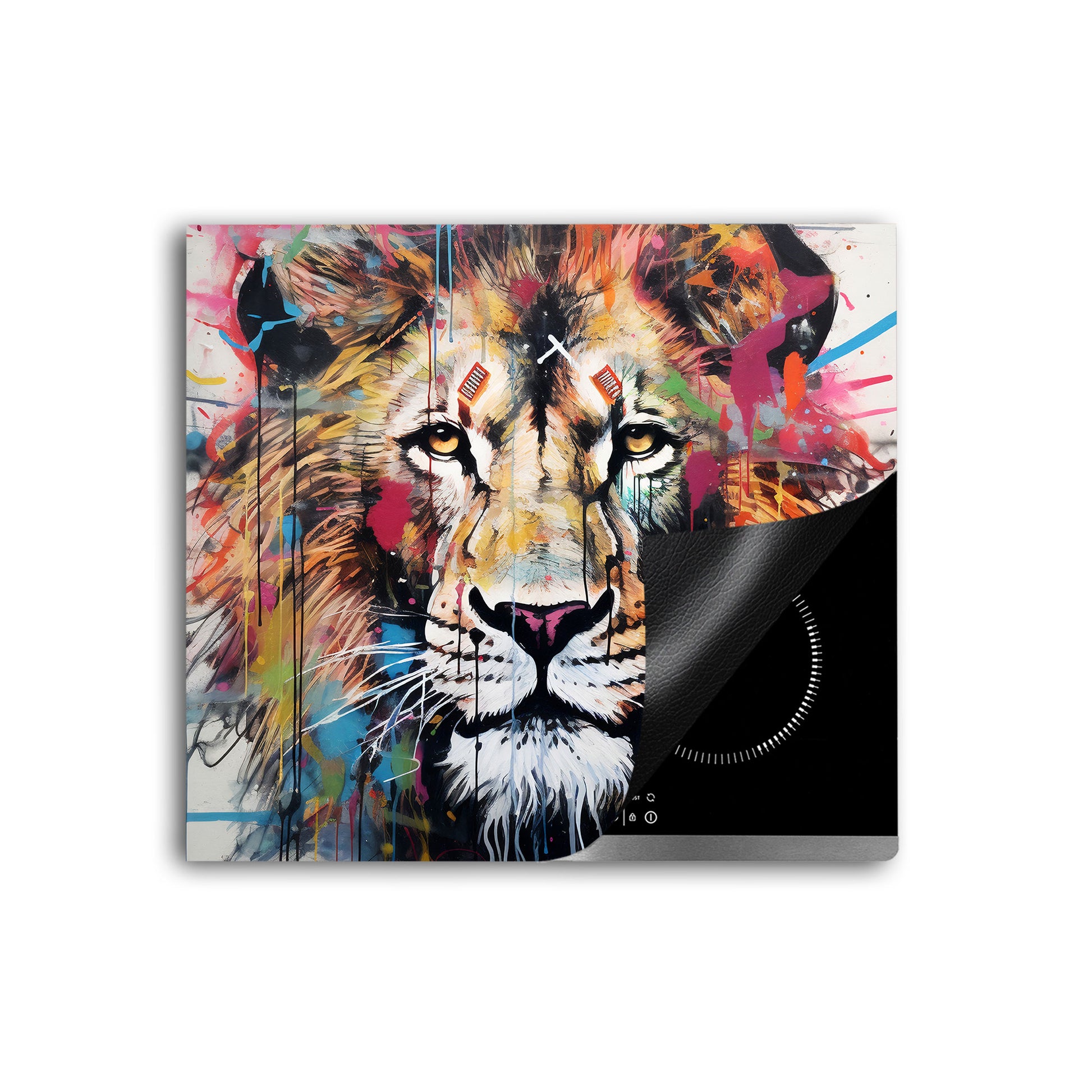 Street Art Löwenkopf Herdabdeckplatte Induktionsschutz für Ceranfeld & Küche Deko