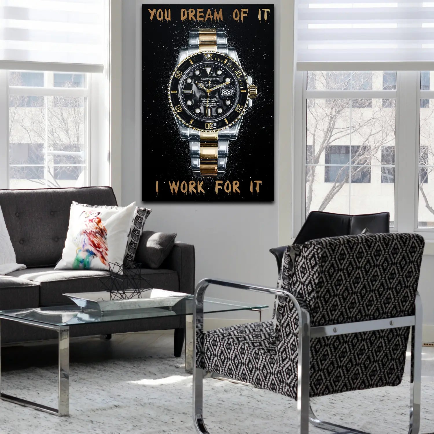 Motivation Uhr WORK FOR IT Wandbild Leinwandbild Zitat