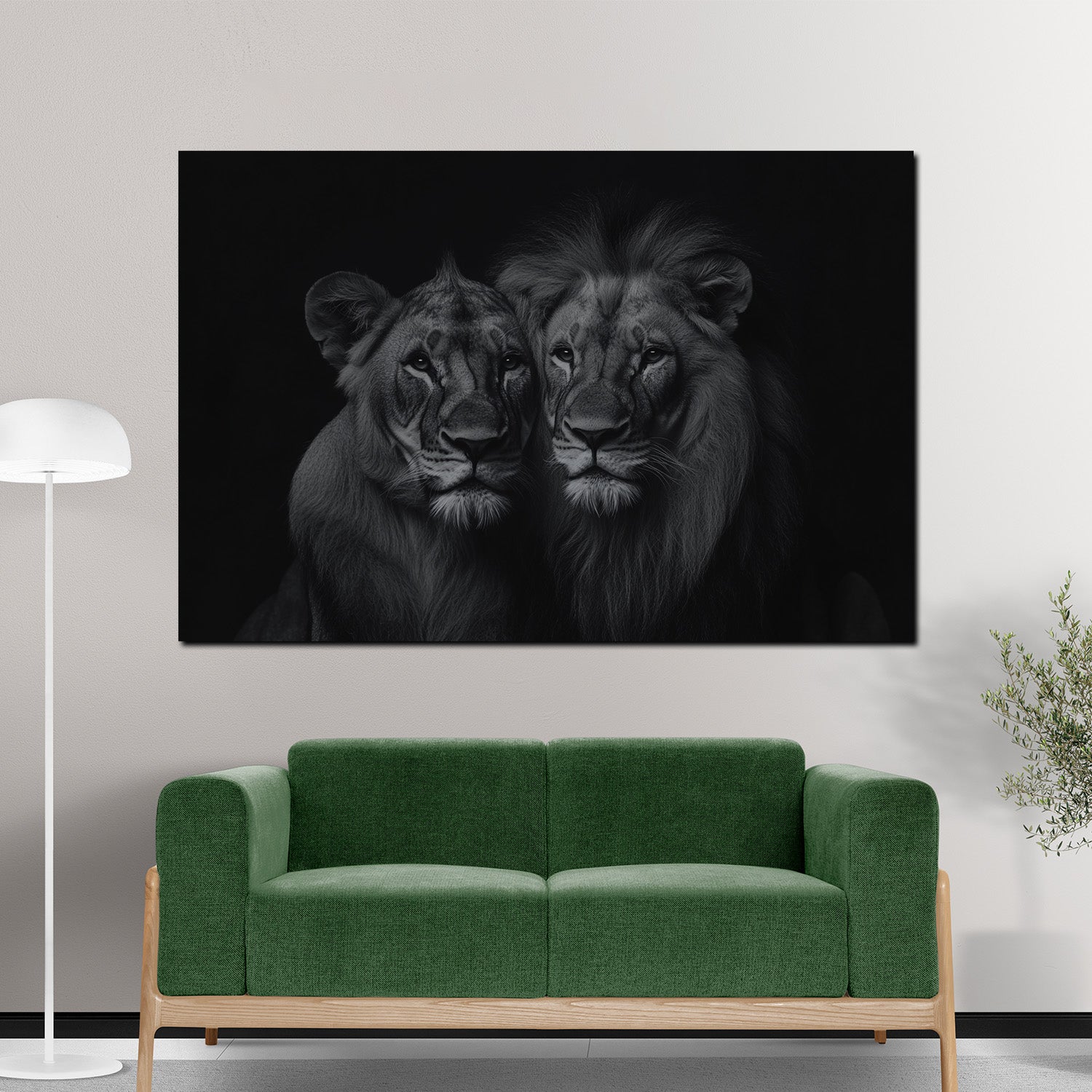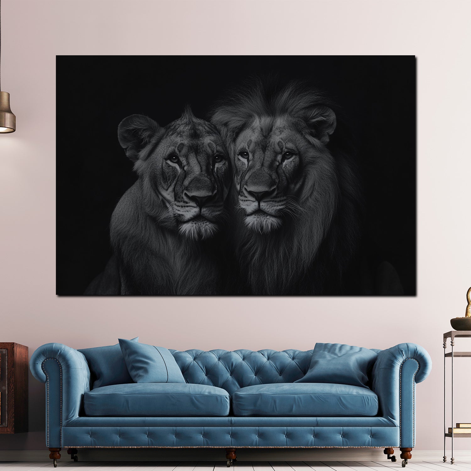 Wandbild Löwenpaar schwarz weiß Eleganz Stärke Tierportrait