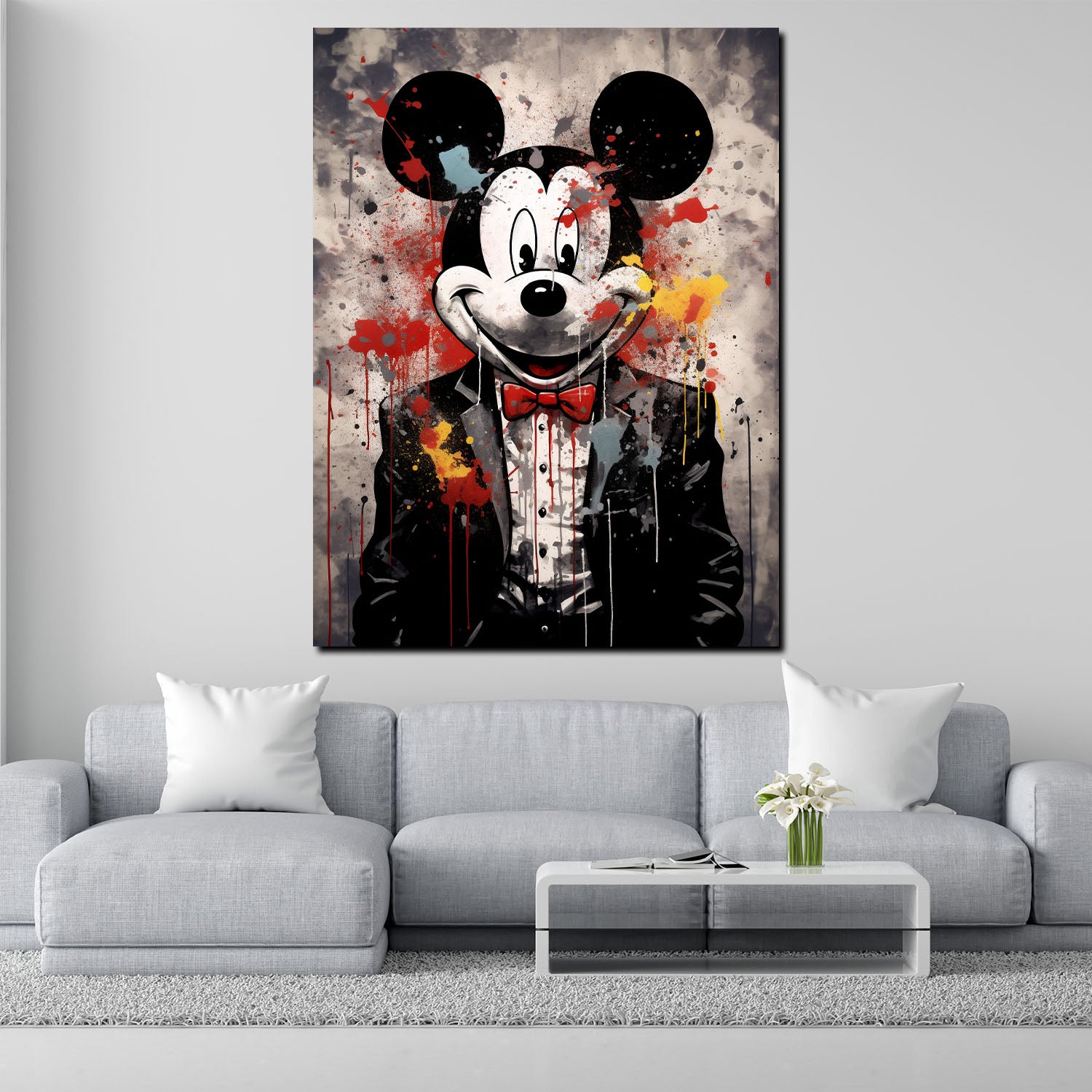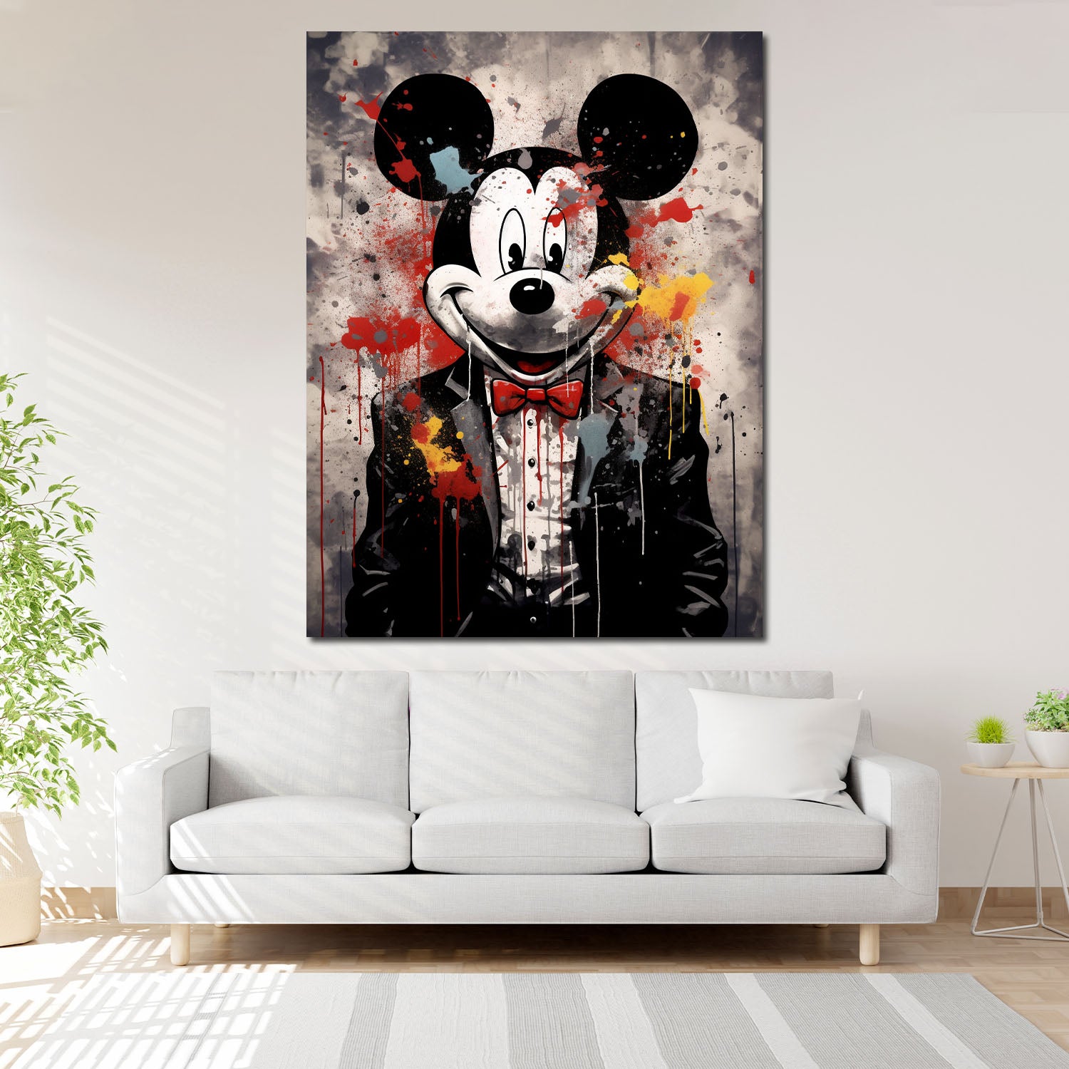 Wandbild Pop Art Maus im Anzug, Splatter Comic