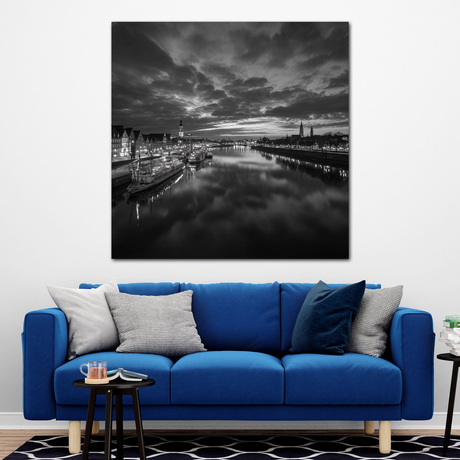 Weserblick Bremen schwarz weiß Abendstimmung Wandbild