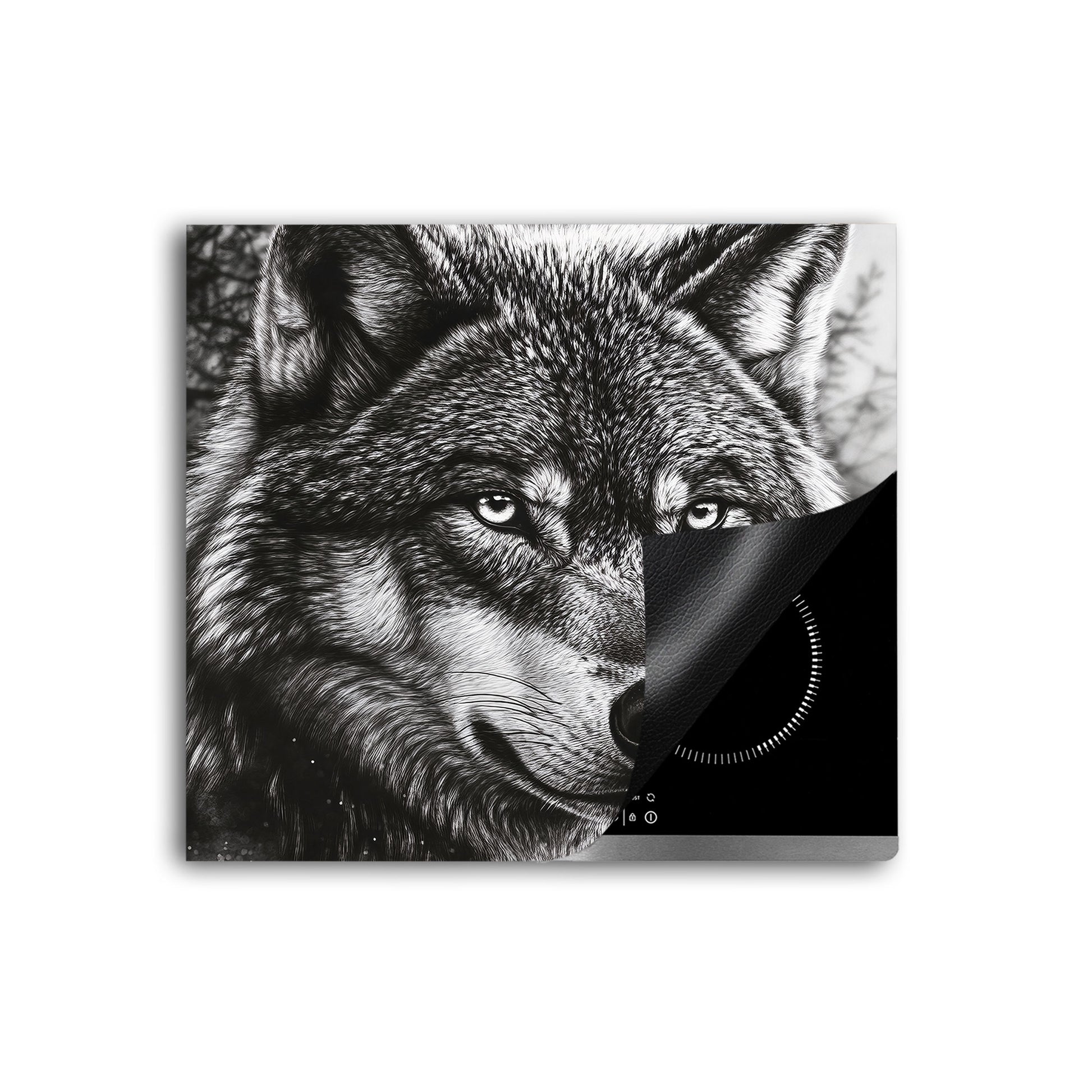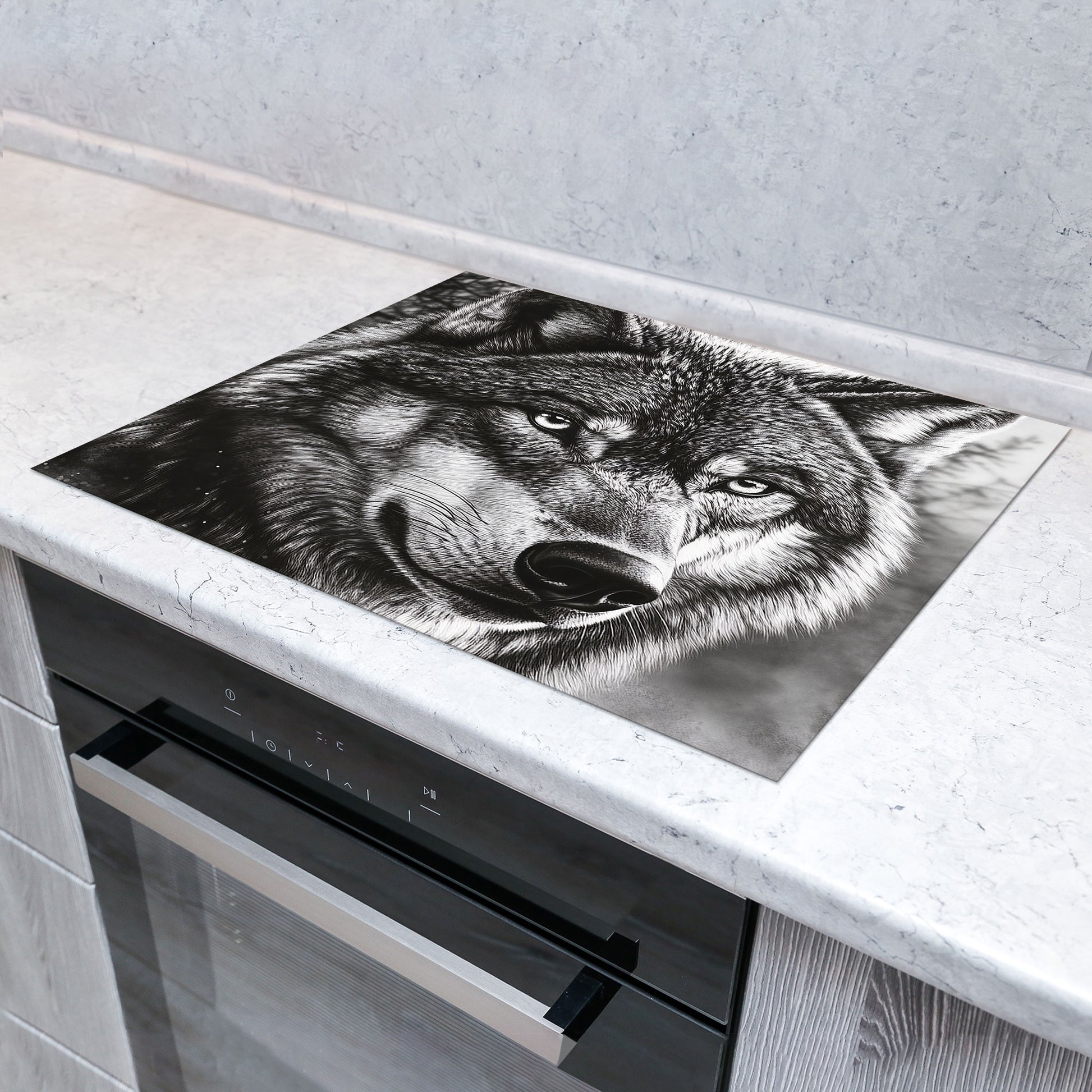 Wolf Porträt schwarz weiß Herdabdeckplatte Induktionsschutz für Ceranfeld & Küche Deko